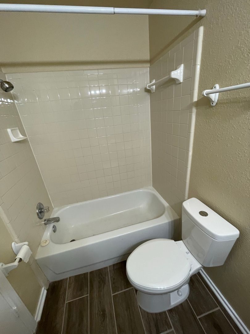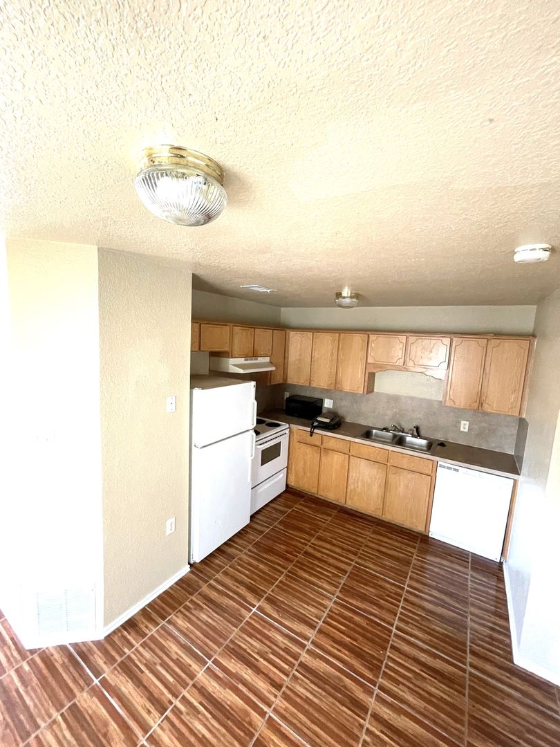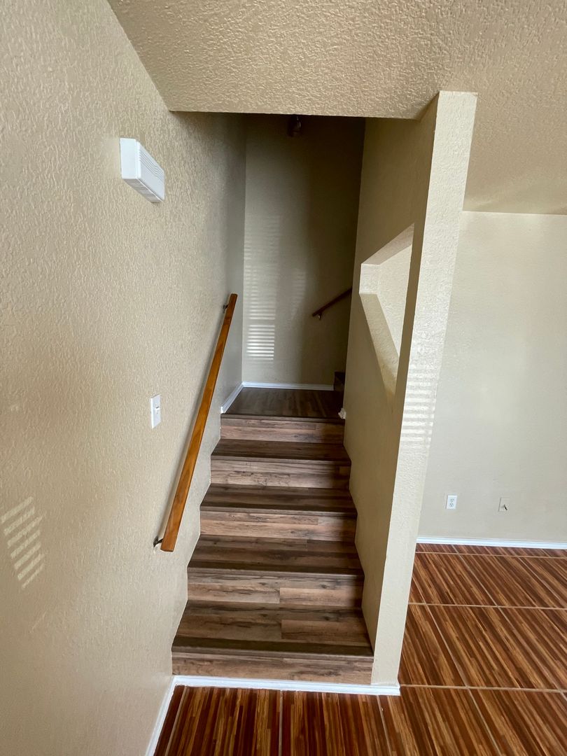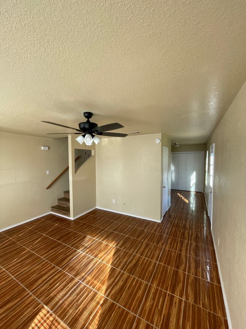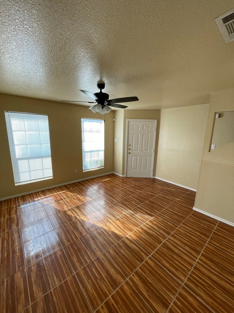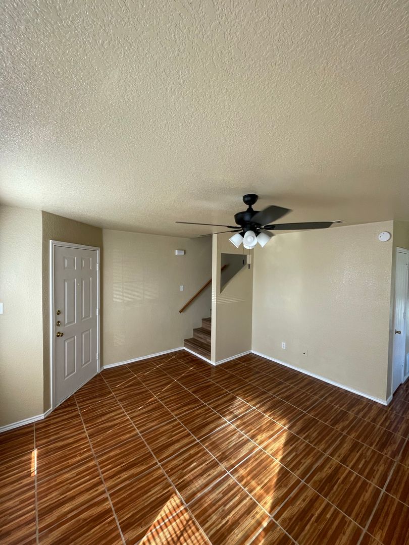 New modern ceramic tile floors in the living room & kitchen. Master bedroom downstairs. Features 1/2 bath downstairs and a seperate utility room. Back yard is fenced with a little patio area. Call to view this apartment today.